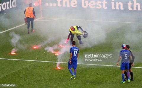 Чехия - Хорватия ўйини 5 дақиқага тўхтатиб турилди
