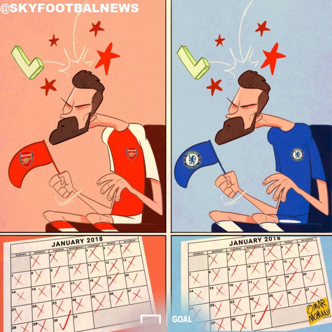 Расман “Челси” футболчисига айланган Оливье Жиру янги жамоасида ҳам захира ўриндиғида клубига мухлислик қилиш билан банд бўлди.