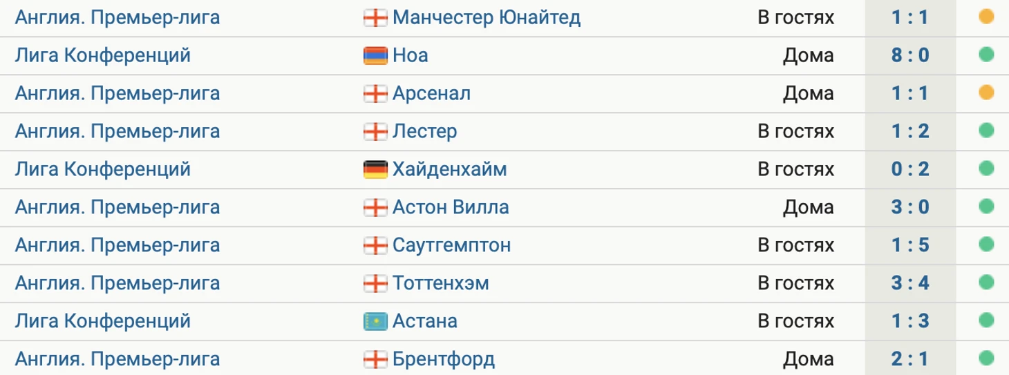 Охирги мағлубият 30 октябрь куни Англия Лига кубоги доирасида "Ньюкасл"га қарши кечганди (0:2).