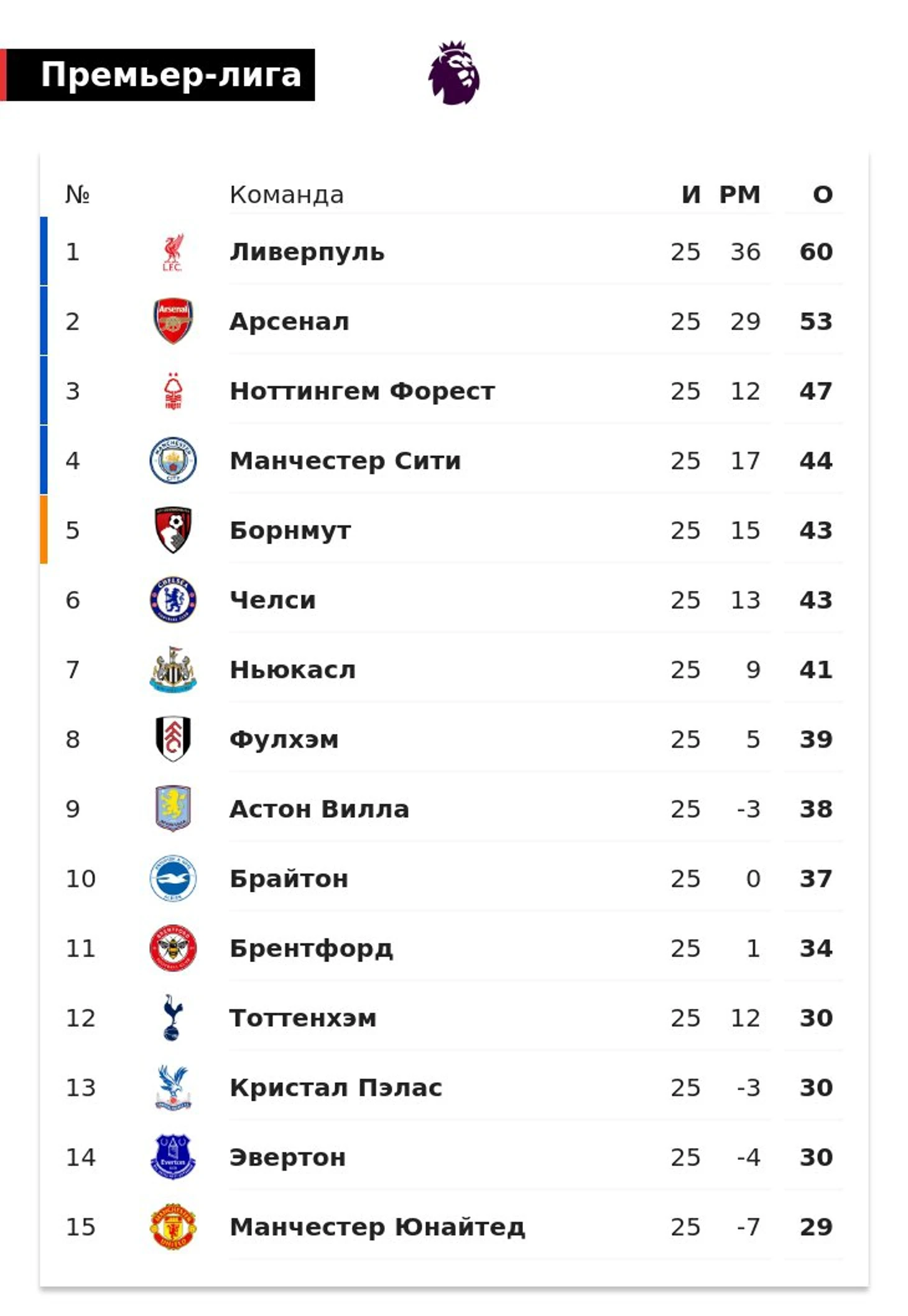 | 1 | Ман. Юнайтед | 0 | 0 |