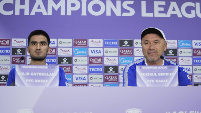 Элит ОЧЛ 3-тури доирасида бўлиб ўтадиган «Шабаб ал-Аҳли» – «Насаф» учрашуви арафасида бўлиб ўтган матбуот анжуманида жамоамиз бош мураббийи Рўзиқул Бердиев ҳамда футболчимиз Ғолиб Ғайбуллаев иштирок этишди.