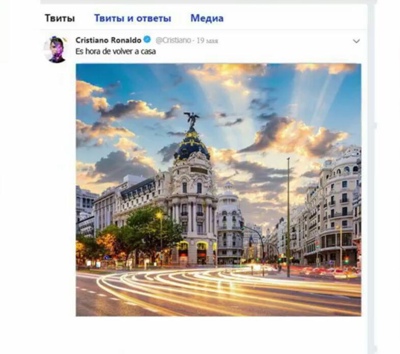 Айнан ушбу интервьюдан сўнг Роналду ўз Твиттерида очиқчасига Мадридга қайтишига шаъма қилган ҳолда шаҳар кўчаларининг суратини жойлаштирганча расмга «Уйга қайтадиган вақт бўлди» дея изоҳ қолдирди.