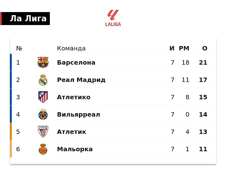 Ла Лигада 7-турдан кейинги турнир жадвалидаги ҳолат билан танишинг