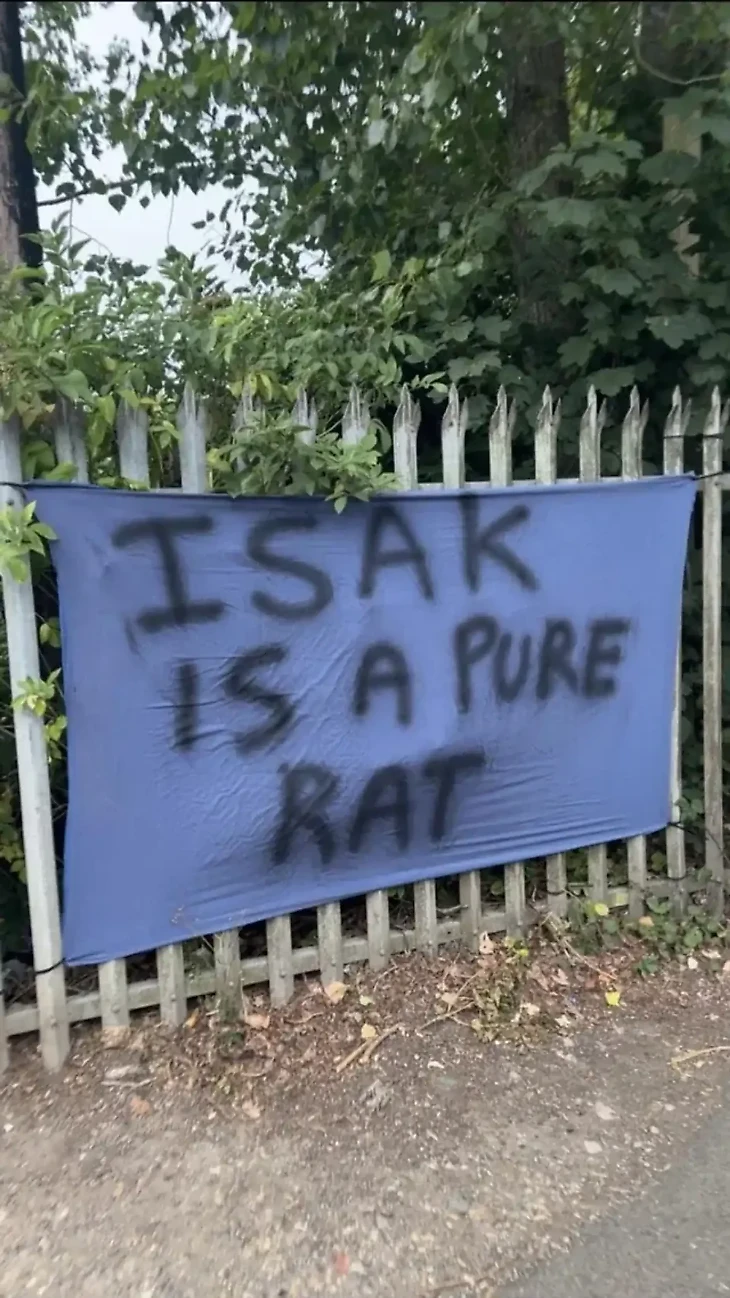 Клубнинг машғулот базаси ёнида "Исак - каламуш" ёзуви туширилган баннер пайдо бўлди.
