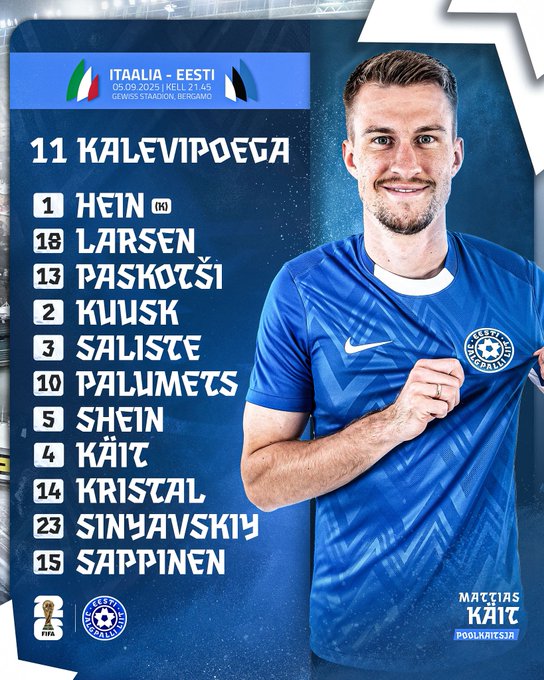 Жаҳон чемпионати саралаши доирасидаги Италия - Эстония беллашуви асосий таркиблари билан танишинг.