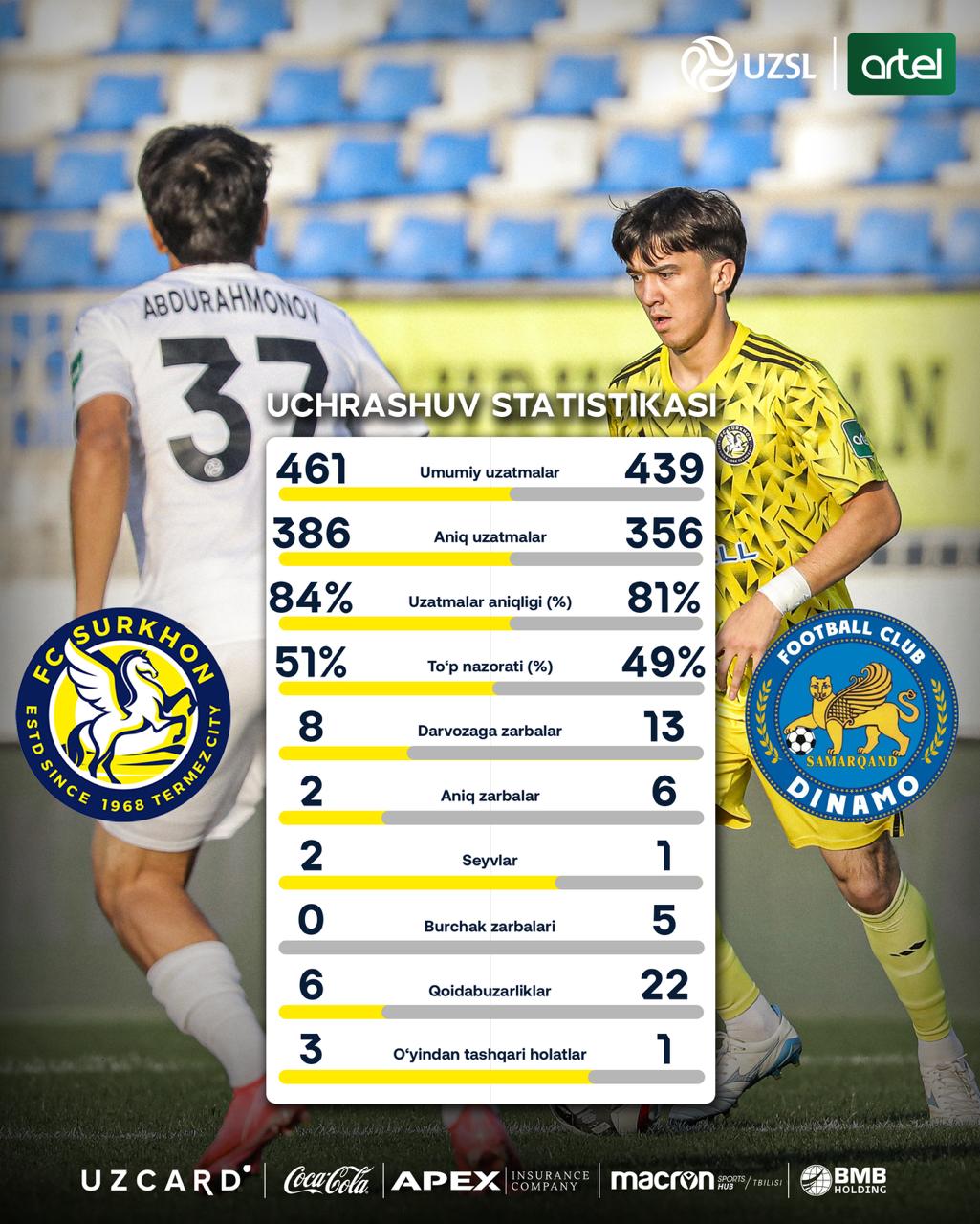 Суперлига. "Сурхон" - "Динамо" - 0:2 (Ўйин статистикаси)