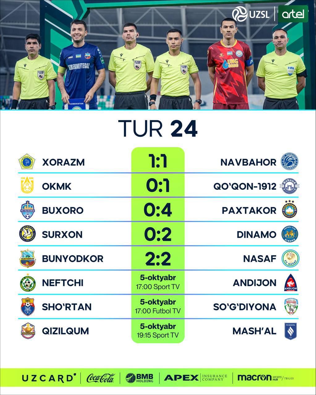Бугун Суперлига 24-тури доирасида 3 та учрашув бўлиб ўтади. Қуйида ўйинлар рўйхати билан танишиб чиқинг.