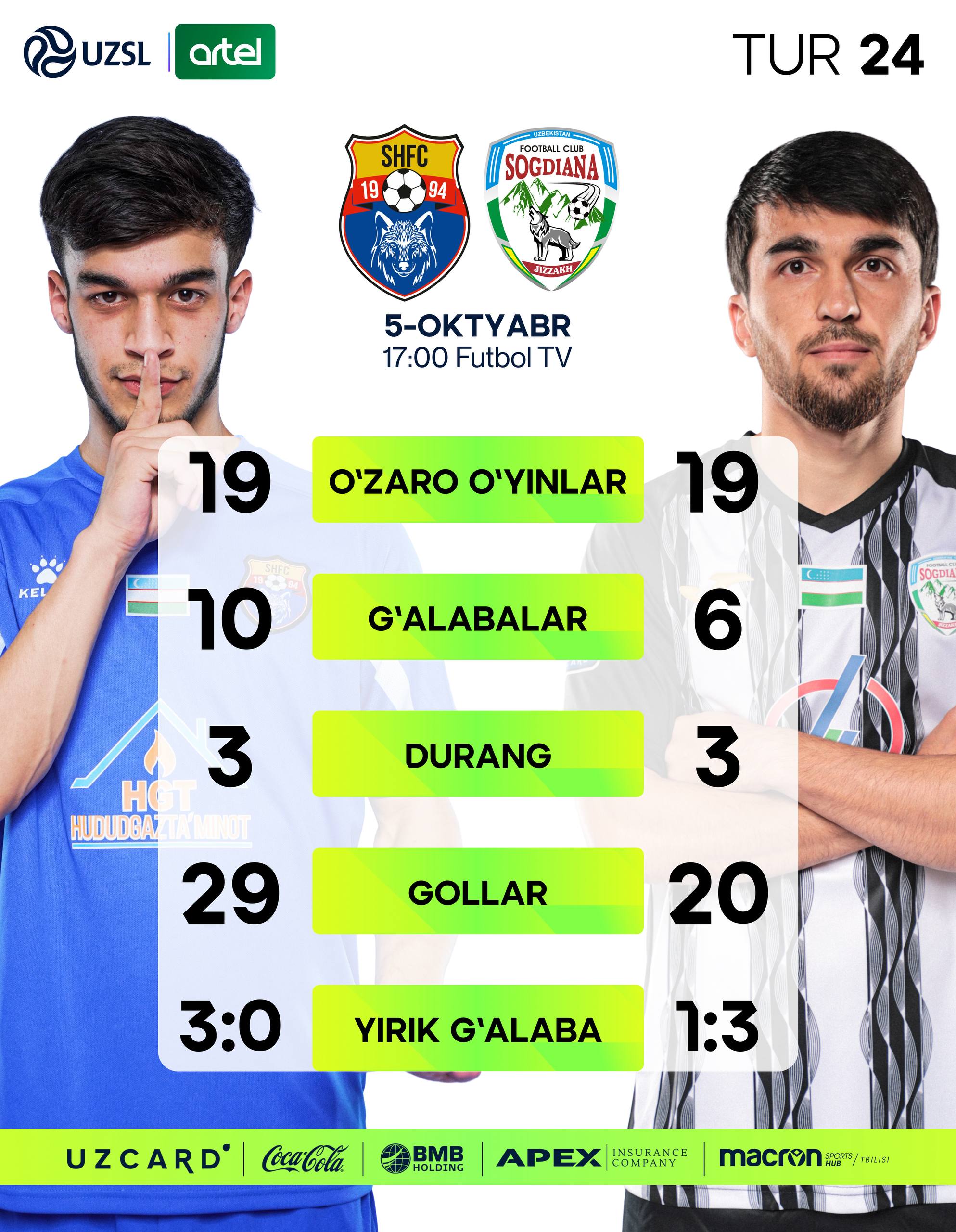 Суперлига. "Шўртан" - "Сўғдиёна". Ўзаро ўйинлар статистикаси (фото)