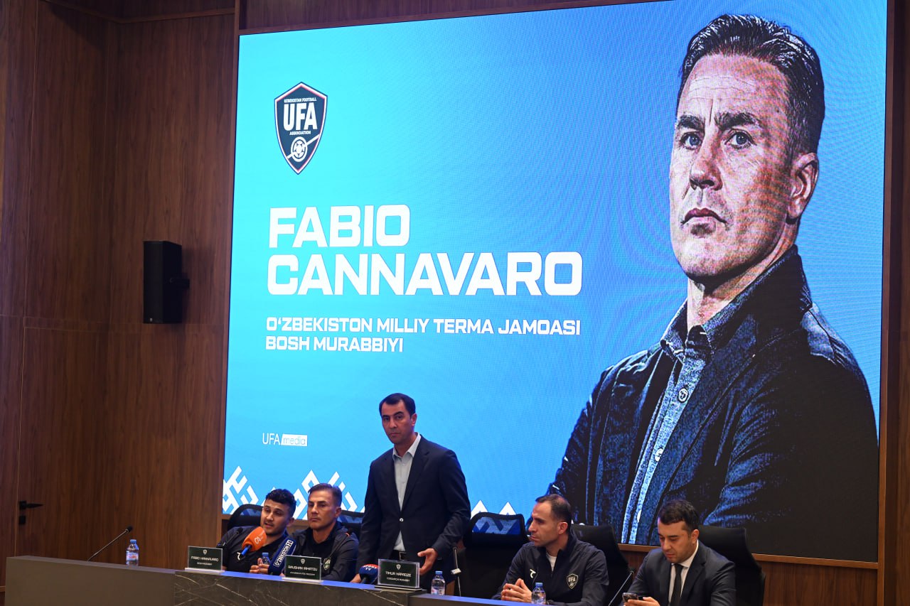 Ўзбекистон миллий жамоасининг янги бош мураббийи Фабио Каннаваро ва ЎФА раҳбарияти иштирокидаги матбуот анжумани давом этмоқда.