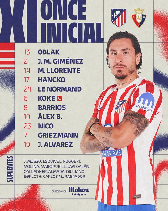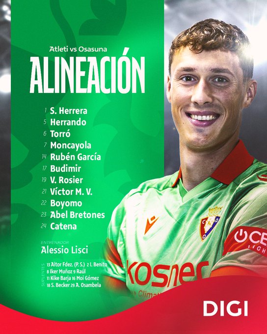 Ла Лига 9-туридан ўрин олган "Атлетико" - "Осасуна" учрашуви асосий таркиблари билан танишинг.