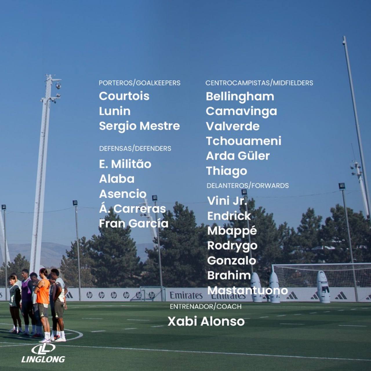 "Қироллик клуби" бош мураббийи Хаби Алонсо ўйин учун 21 нафар футболчини қайдномага киритди.