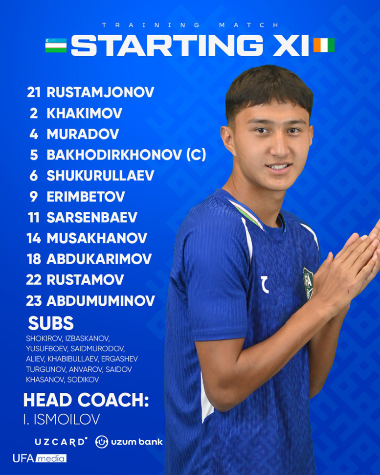 Ўртоқлик ўйини. Ўзбекистон U17 терма жамоасининг Кот-д'Ивуарга қарши таркиби аниқ бўлди