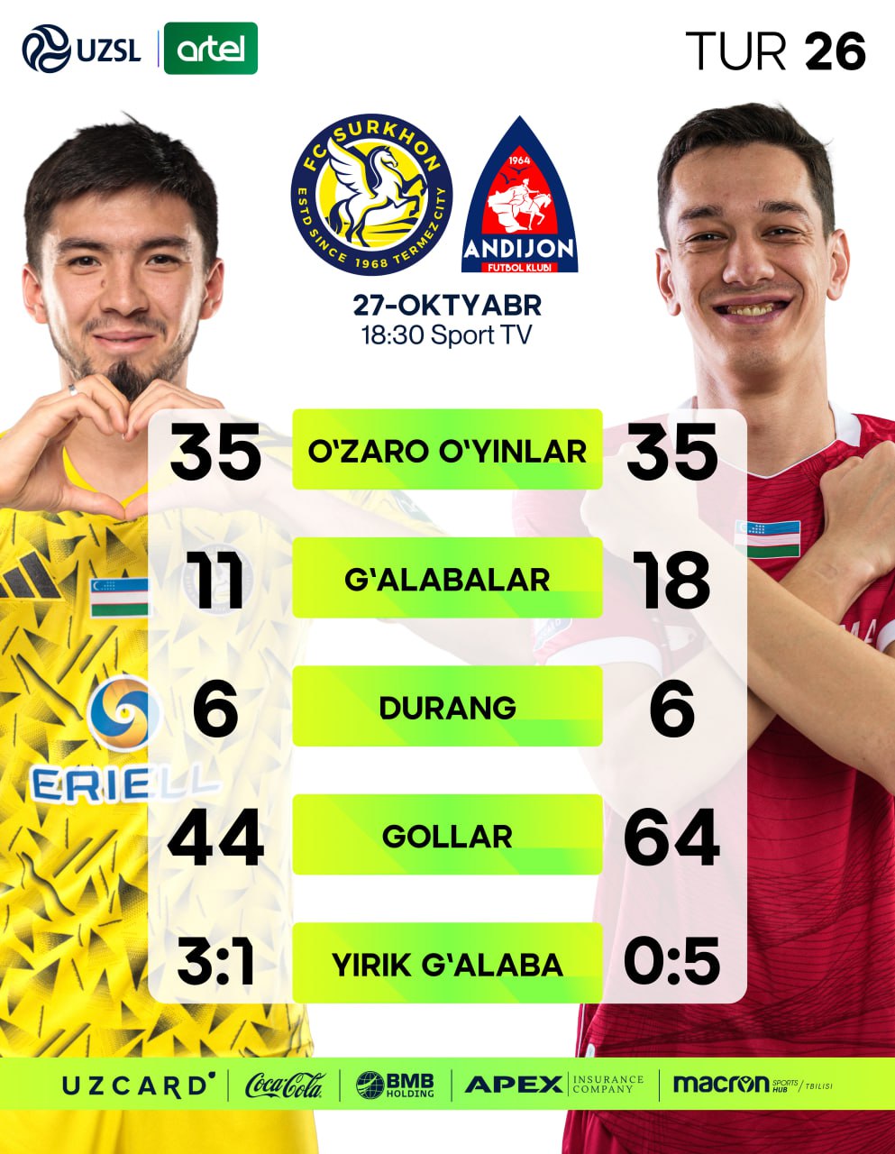 Суперлига. "Сурхон" - "Андижон". Ўзаро ўйинлар статистикаси (фото)