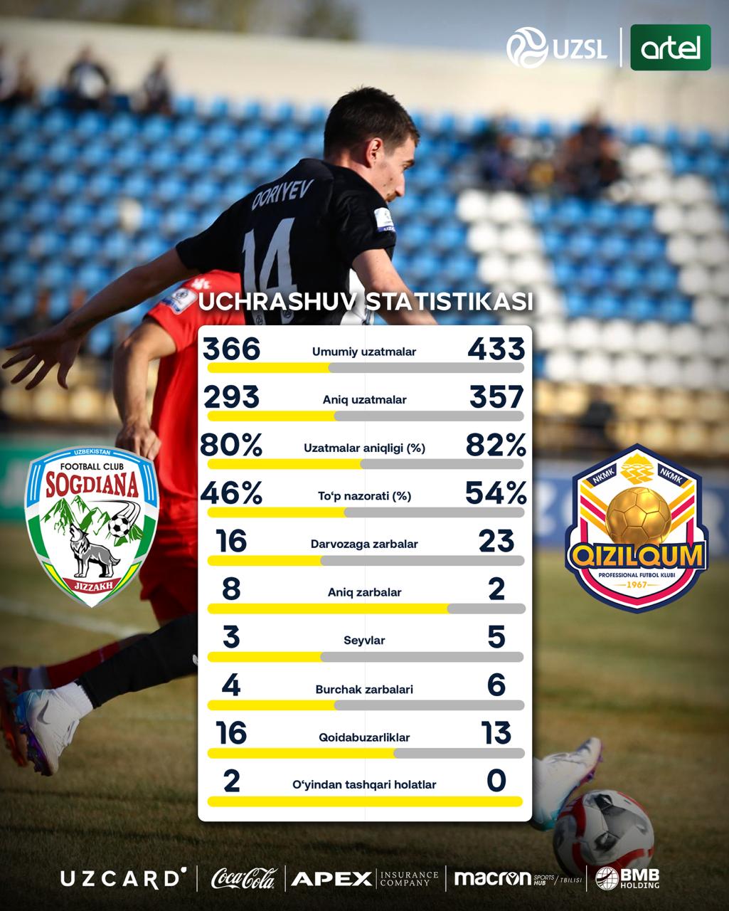 Суперлига. "Сўғдиёна" - "Қизилқум" - 3:0 (Ўйин статистикаси)
