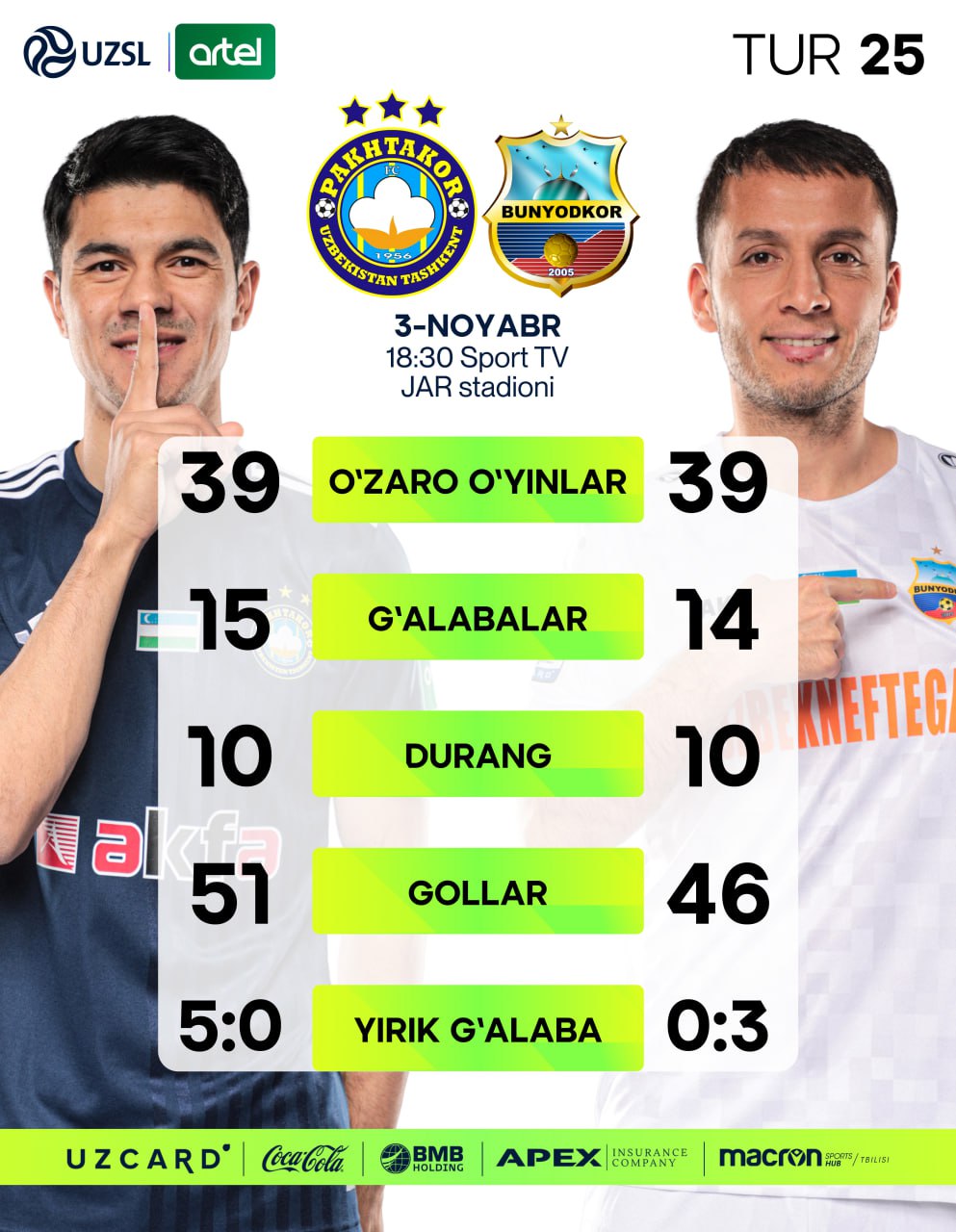 Суперлига. «Пахтакор» – «Бунёдкор». Ўзаро ўйинлар статистикаси (фото)