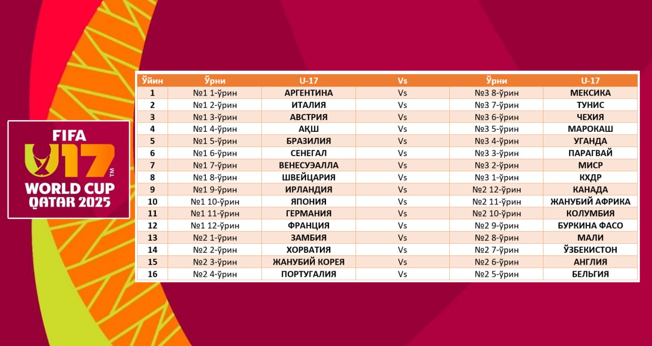 U-17 ЖЧ. Плей-офф босқичининг барча жуфтликлари маълум бўлди