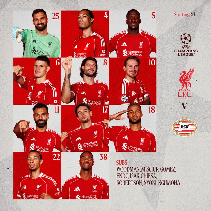 ЕЧЛ. "Ливерпуль" - ПСВ беллашуви асосий таркиблар эълон қилинди