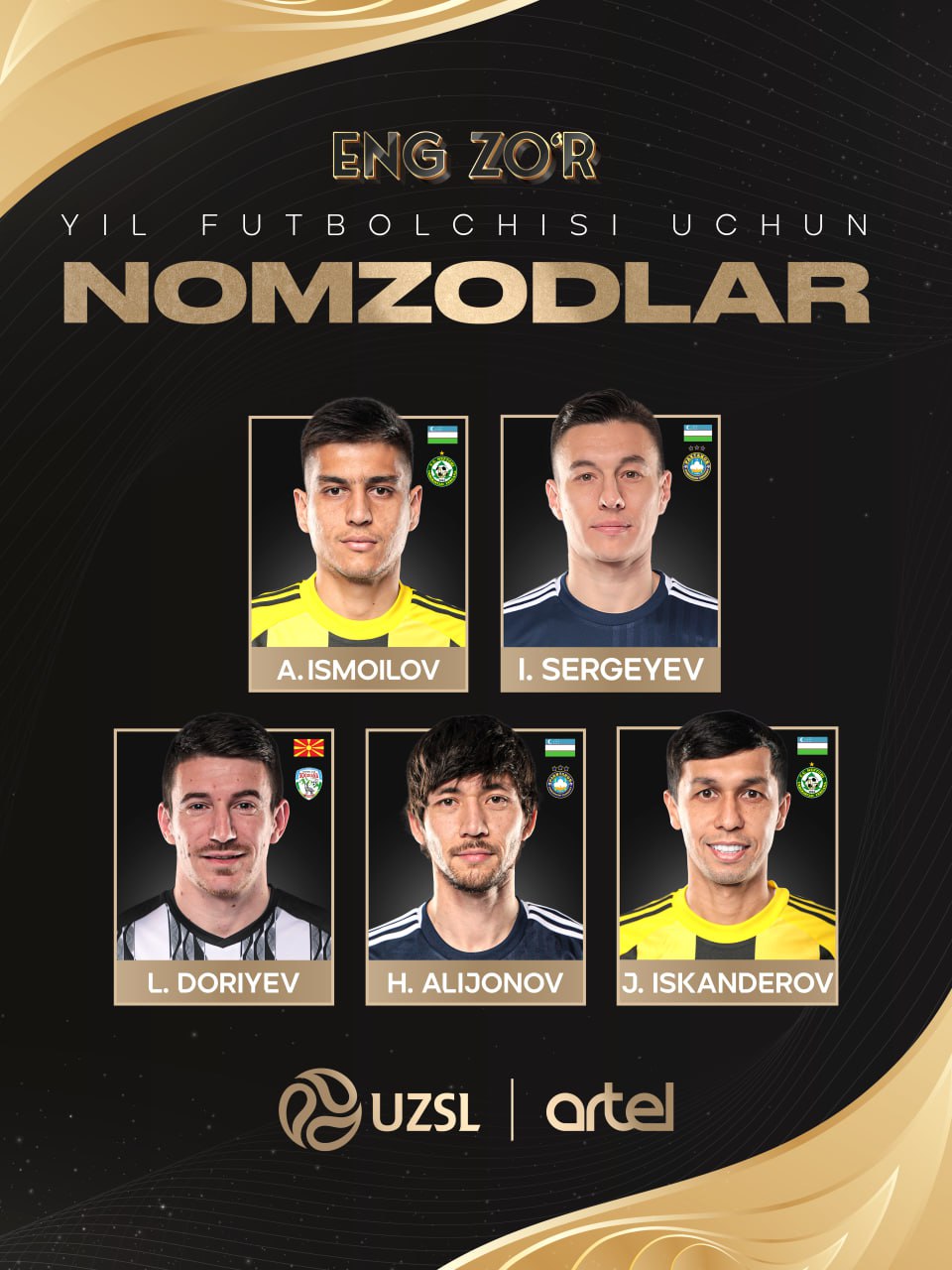 ЎзПФЛ Суперлигада «Йилнинг энг яхши футболчиси» мукофоти учун номзодлар бешлигини эълон қилди.