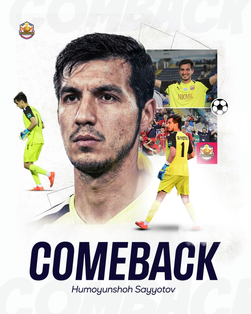 Навоийлик футбол ишқибозларига яхши таниш бўлган ёш иқтидорли дарвозабон Ҳумоюншоҳ Сайётов 2026 йилги мавсумда “Қизилқум” шарафини ҳимоя қилади.