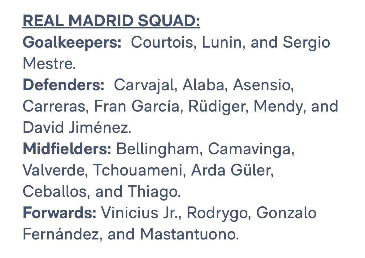 Тошкент вақти билан 20:15'да старт оладиган учрашув учун "қироллик клуби"нинг кенгайтирилган таркиби билан танишинг.