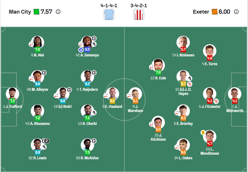 Яқинда “Манчестер Сити”га қўшилган Антонио Семеньо Sofascore томонидан учрашувнинг энг яхши футболчиси деб топилди — 9,5. Ганалик вингер ўйинни асосий таркибда бошлаб, 64-дақиқада захирага олинди. Футболчи 49-дақиқада Рико Льюиснинг голига ҳаммуаллифлик қилган бўлса, орадан 5 дақиқа ўтиб, ўз ҳисобига битта гол ҳам ёздириб қўйди.
