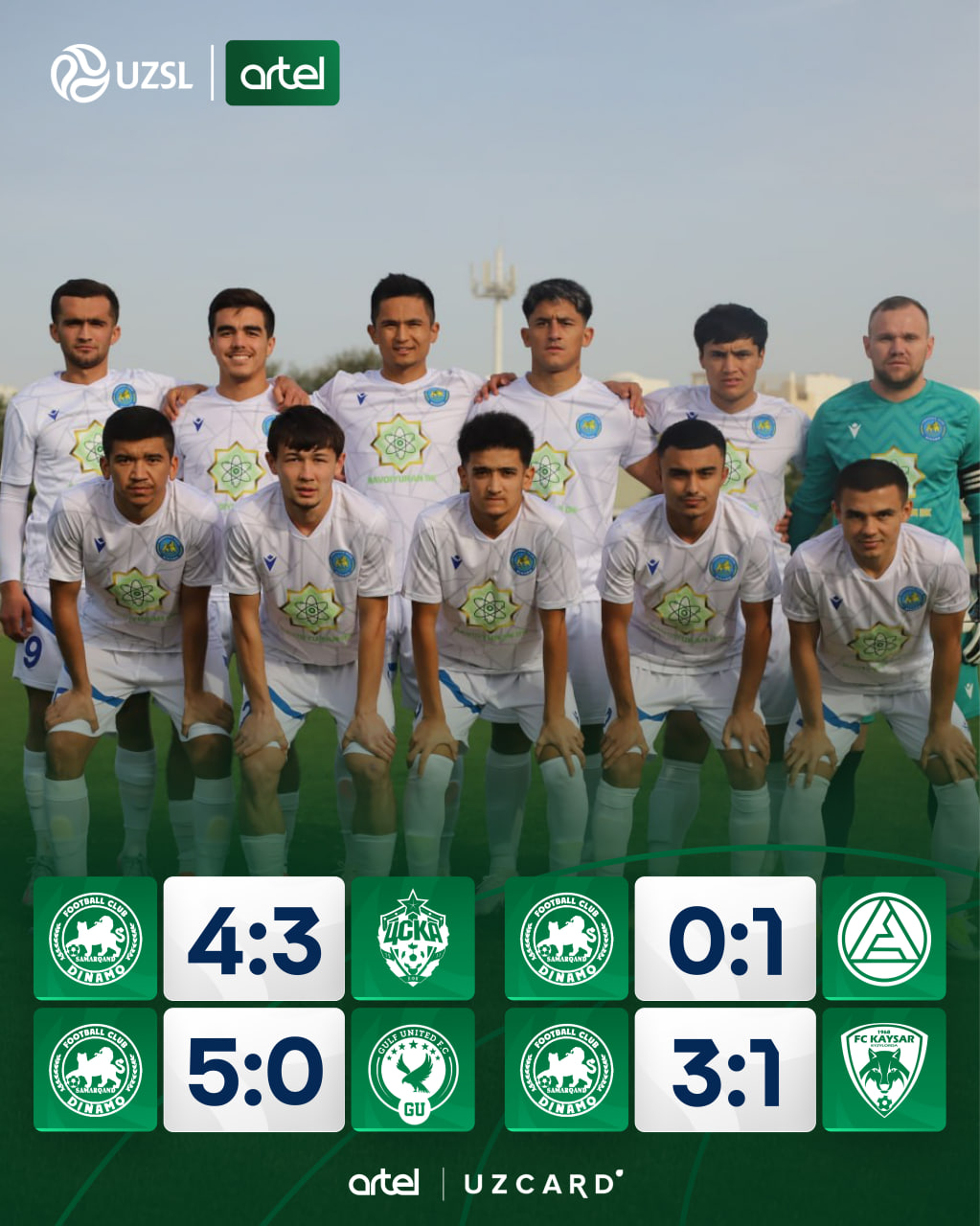 Самарқанднинг "Динамо" клуби БААда ташкил этилган илк йиғинни якунлади. 13 кун давом этган йиғин давомида Вадим Абрамов жамоаси 4 та ўртоқлик учрашувида майдонга тушди ва уларда қуйидаги натижалар қайд этилди.
