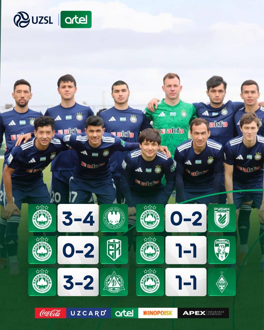 Икки ҳафта давом этган йиғин давомида жамоа 6та ўртоқлик учрашувида майдонга тушди ва уларда қуйидаги натижалар қайд этилди: