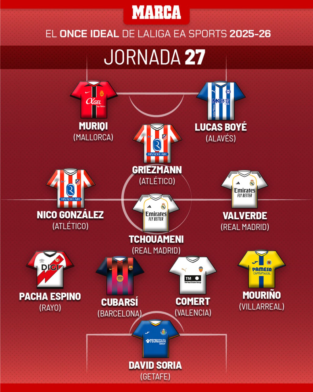 Испаниянинг Marca нашри Ла Лигада 27-тур рамзий жамоасини тузиб чиқди.