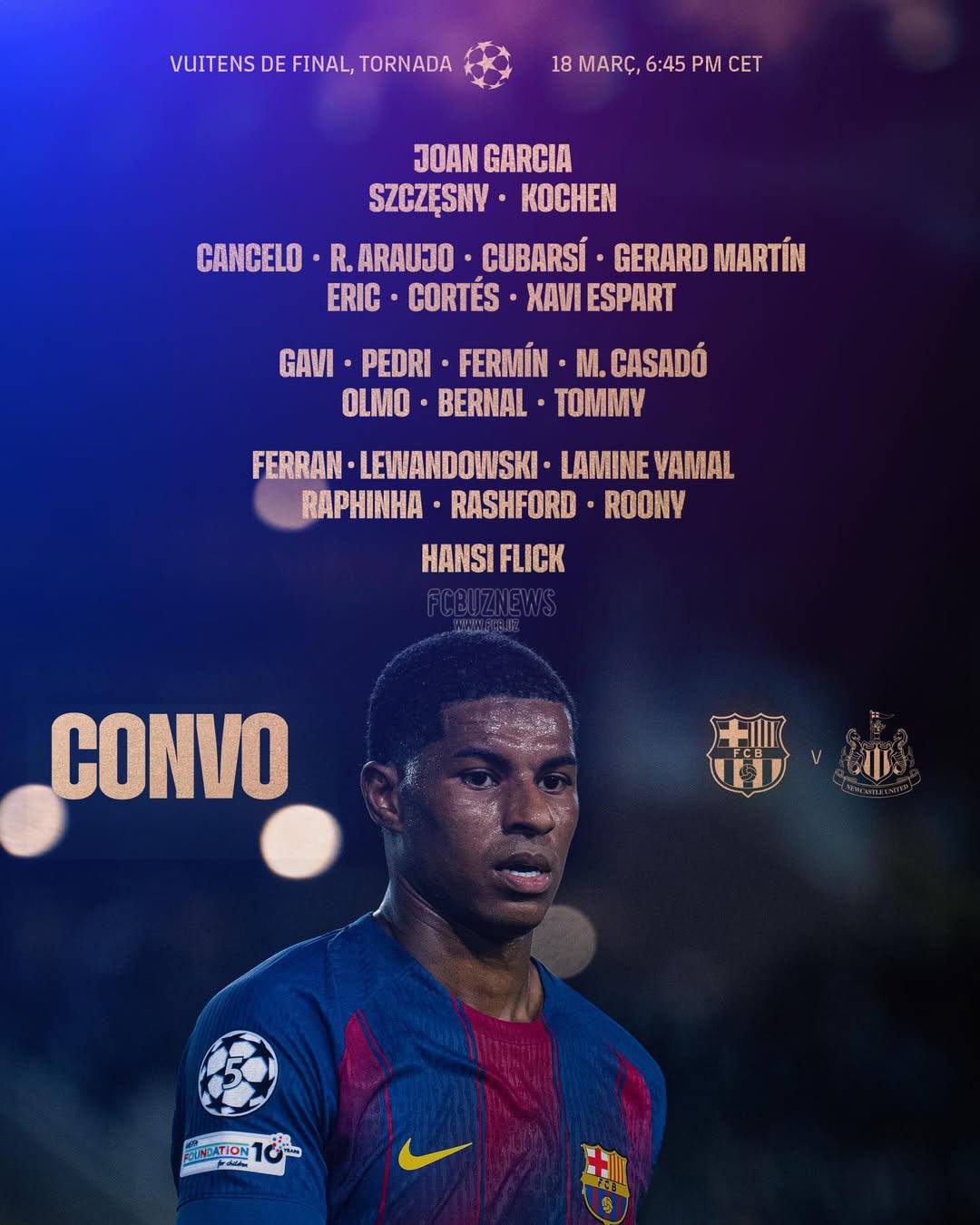 "Барселона" 18 март оқшомида Чемпионлар Лигаси 1/8 финал жавоб баҳсида "Ньюкасл"ни қабул қилади.