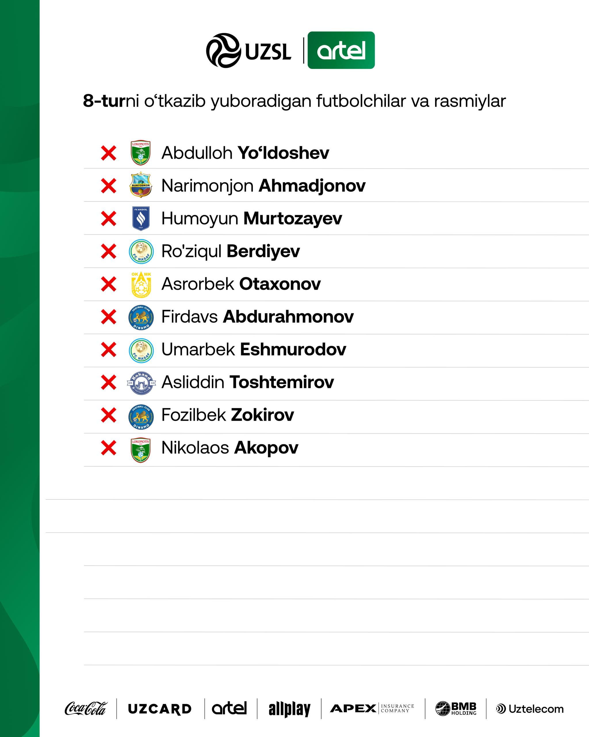 ЎЗБЕК ФУТБОЛИ / Суперлига / Дисквалификациялар