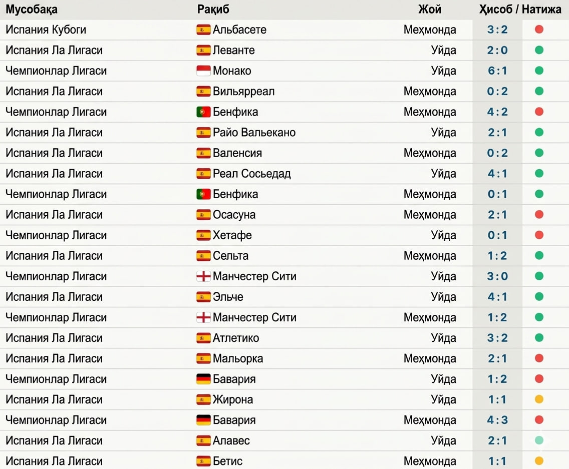 Арбелоа «Реал» бошқарувидаги ўйинларнинг 60 фоизида ғалаба қозонди