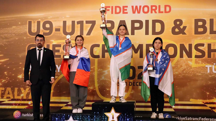 Жорий йилнинг, 16–21 декабрь кунлари Туркиянинг Анталия шаҳрида шахмат бўйича 9–17 ёшгача бўлган ўғил болалар ва қизлар ўртасида рапид ва блиц йўналишлари бўйича Жаҳон чемпионати якунланди.