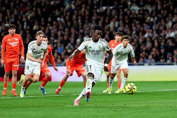 Винисиус Жуниорнинг пенальтидан урган иккита голи «Реал Мадрид»га шанба кунги Ла Лига баҳсида «Реал Сосьедад»ни тор-мор этишга ёрдам берди (4:1).