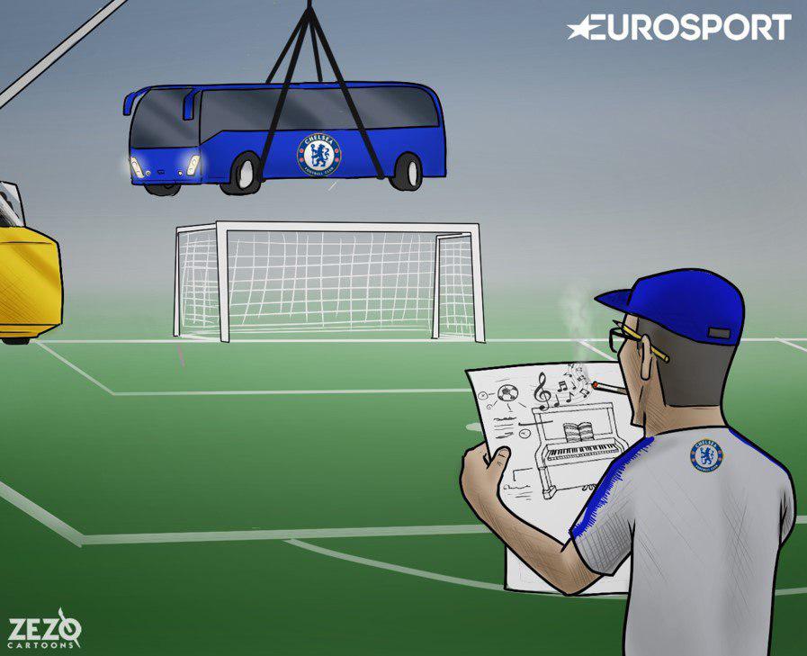 Karikatura. Sarri «Chelsi»ni uslubiga o‘zgarishlar kiritishni boshladi