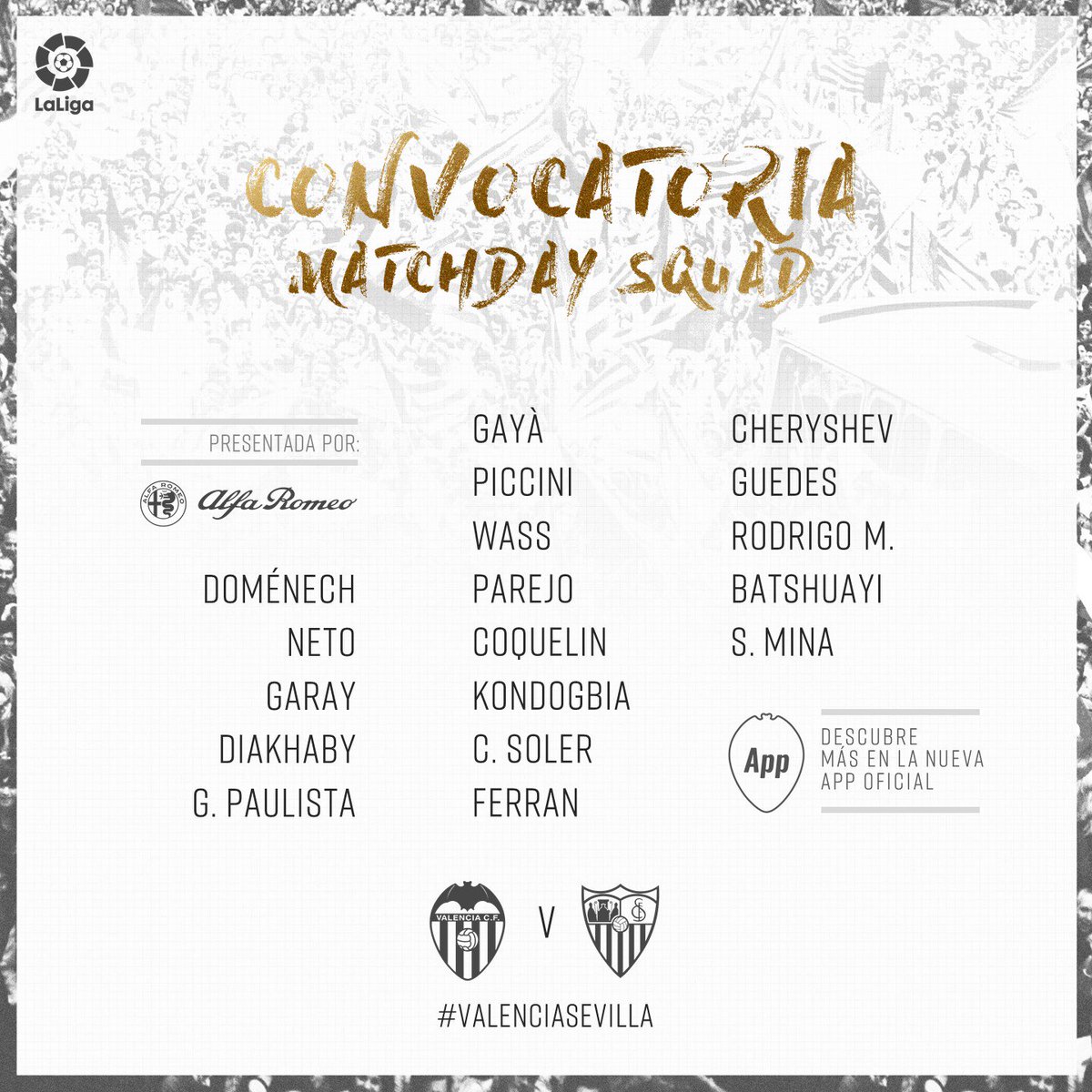 «Valensiya»ning «Sevilya»ga qarshi kengaytirilgan tarkibi ma’lum