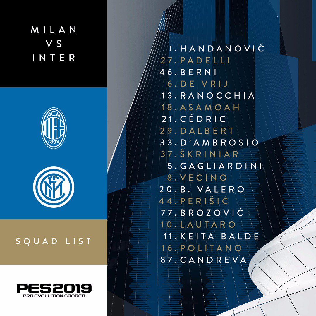 Mazkur derbi uchun, “neradzurrilar” bosh murabbiyi Luchano Spalletti kengaytirilgan tarkibni e’lon qildi. Ushbu qaydnomaga Mauro Ikardi kiritilmadi.