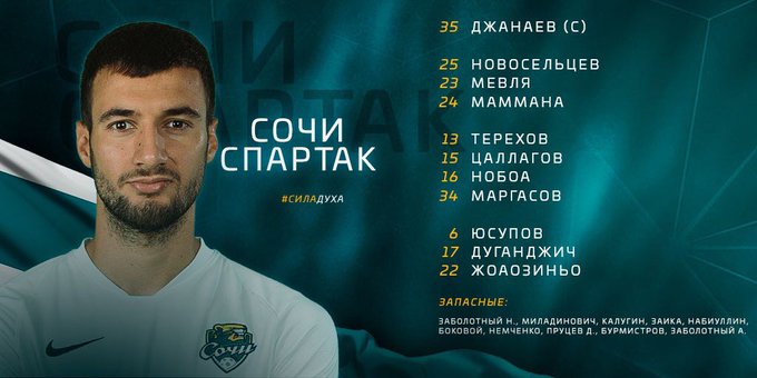 Rossiya chempionatining 18-turidan o‘rin olgan "Sochi" va "Spartak" jamoalari o‘rtasidagi o‘yin boshlanmoqda. Har ikki jamoa murabbiylari asosiy tarkiblarni e’lon qildi.