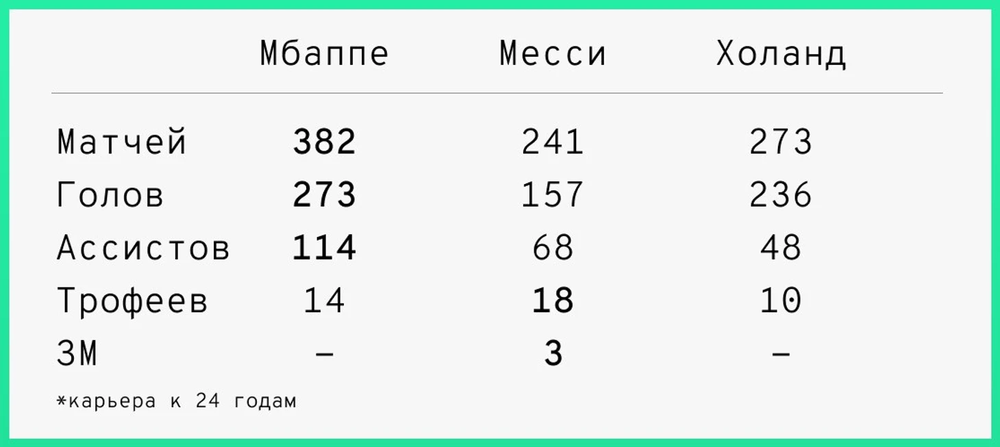 24 yoshli Messi, Mbappe va Xolandning natijalari solishtirildi