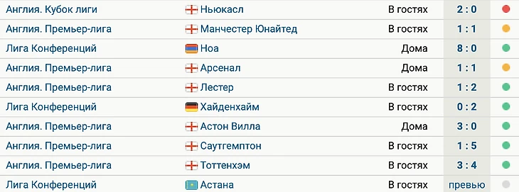 Londonliklarning mag‘lubiyatsiz o‘yinlar seriyasi endi jami 8 o‘yinni tashkil etadi – oxirgisi 30 oktyabr kuni Angliya Liga kubogi doirasida "Nyukasl"ga qarshi (0:2) bo‘lgan.