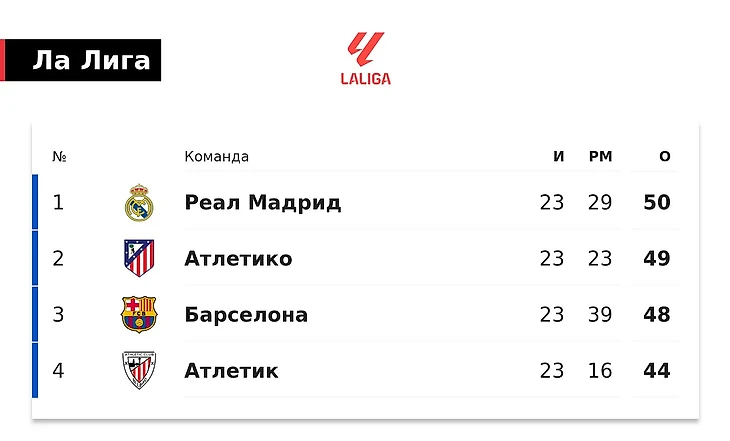 "Ko‘k-anorranglilar" hisobida 48 ochko bor. Peshqadam "Real Madrid"dan 2 ochko, "Atletiko"dan 1 ochko ortda qolmoqda.