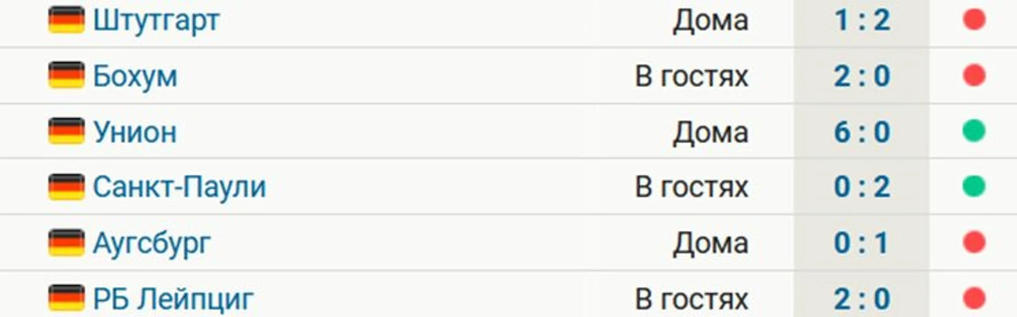 Shundan buyon jamoa Bundesligada 6 ta o‘yin o‘tkazib, 4 ta mag‘lubiyat va 2 ta g‘alabaga erishdi.