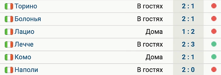 Italiya chempionatining so‘nggi 6 ta o‘yinida "rossonerilar" 4 ta mag‘lubiyat va 2 ta g‘alabani qo‘lga kiritishdi.