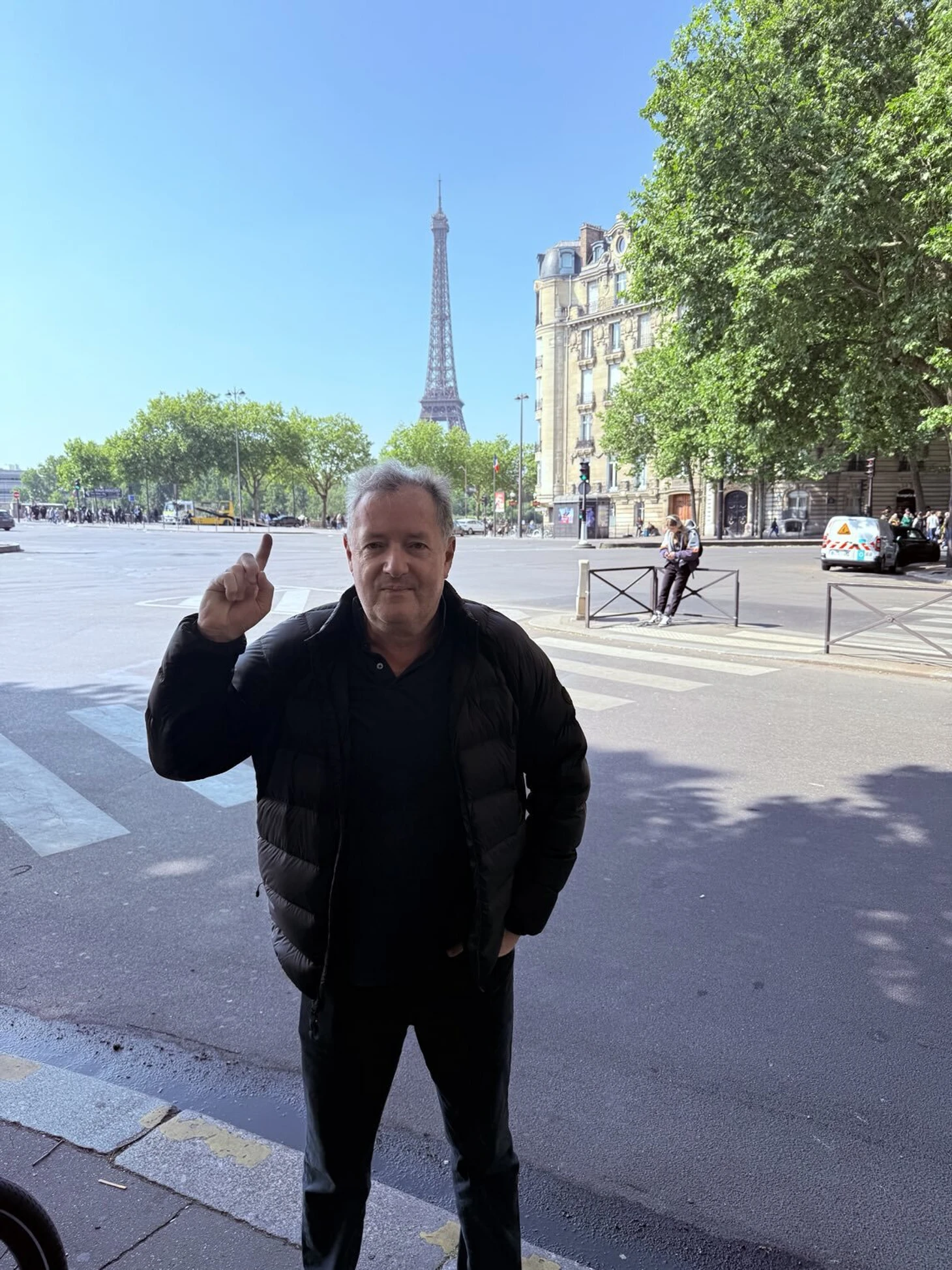 Ammo faqatgina mana bu la’nati sayyohlik suratini oldim," - deb yozdi teleboshlovchi va "Arsenal" muxlisi Morgan hamda Eyfel minorasi oldida tushgan rasmini joylab.