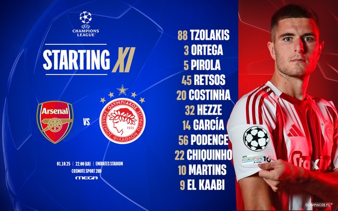 YECHL. «Arsenal» – «Olimpiakos». Boshlang‘ich tarkiblar bilan tanishing