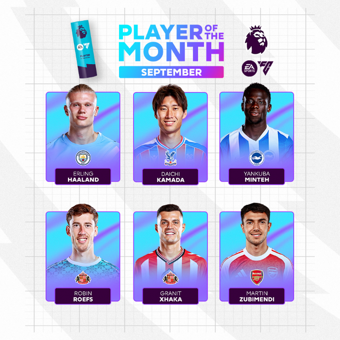Sentyabr oyi yakunlariga ko‘ra Angliya Premyer-ligasida oyning eng yaxshi futbolchisi bo‘lish uchun nomzodlar ma’lum bo‘ldi.
