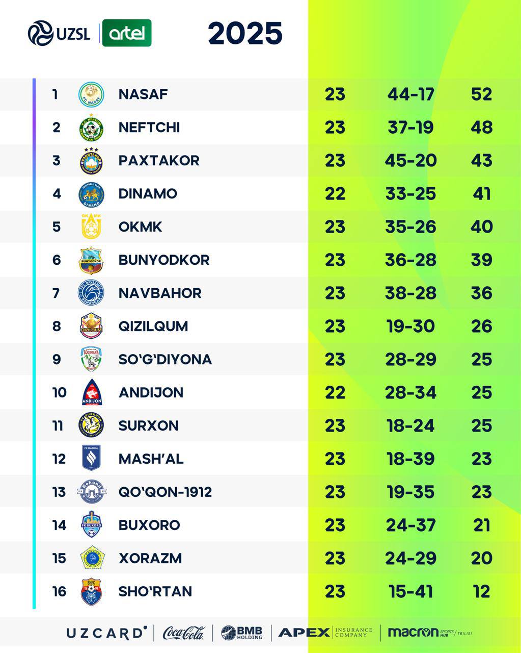 • Superliga mavsumida chempionlikka asosiy da’vogar qaysi jamoa deb hisoblaysiz?