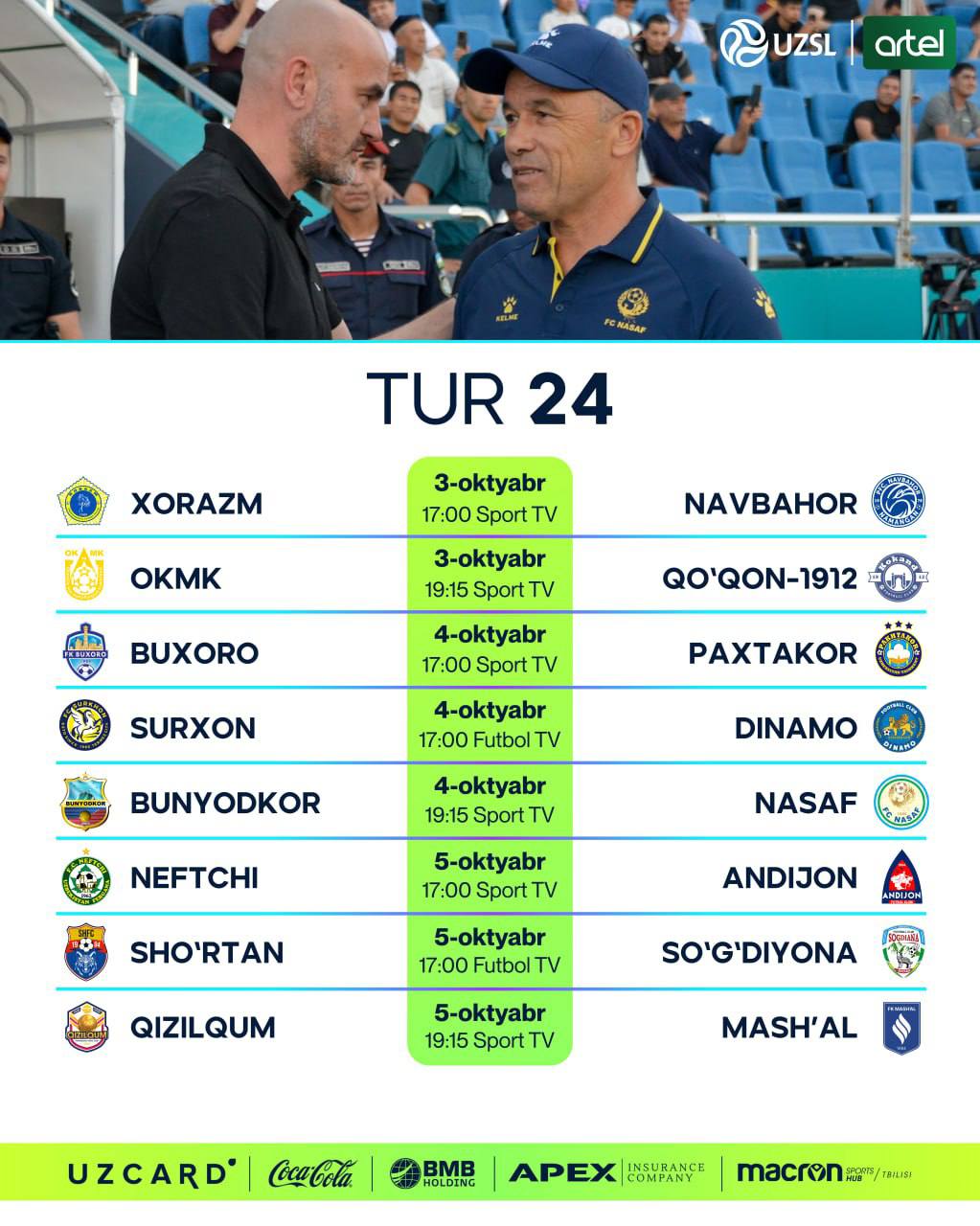 Superligada 24-tur o‘yinlari boshlanmoqda.