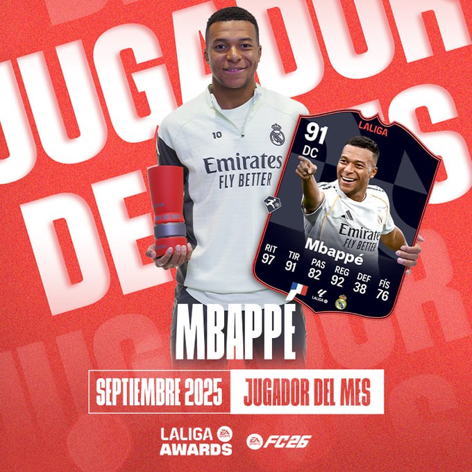 Madridning "Real" klubi hujumchisi Kilian Mbappe La Ligada sentyabr oyining eng yaxshi futbolchisi deb topildi.