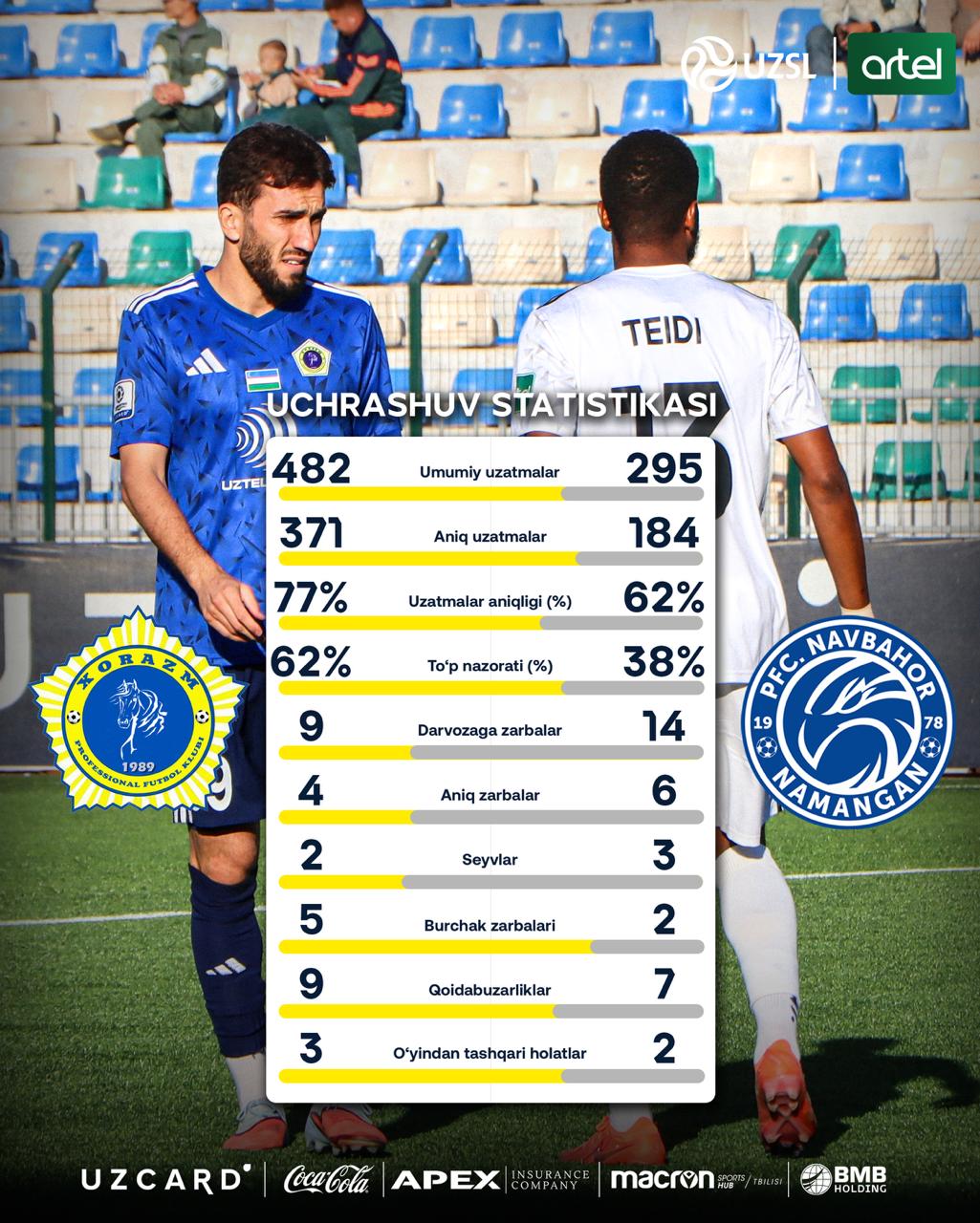 Superliga. "Xorazm" - "Navbahor" - 1:1 (O‘yin statistikasi)