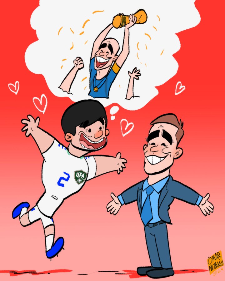 Omar Mo‘maniy karikatura chizdi: Kannavaro O‘zbekiston milliy jamoasi bosh murabbiyiga aylansa...